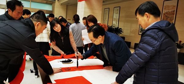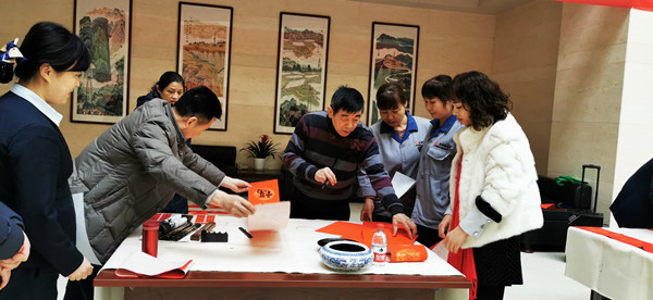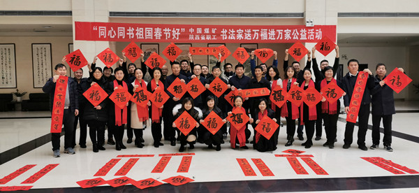 为深入学习贯彻习近平新时代中国特色社会主义思想和党的十九大、十九届四中全会精神,弘扬中华优秀传统文化,营造欢乐祥和的节日气氛,1月22日上午,在农历新年即将来临之际,陕西省煤田地质工会在bw必威西汉姆联官网办公大楼一楼大厅举办以“同心同书祖国春节好”为主题的职工书法家送万福进万家公益活动,为集团公司机关100多名干部职工书写春联和“福”字书法作品200余幅,为职工们送上了美好的新年祝福。