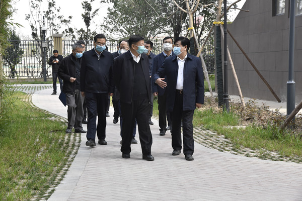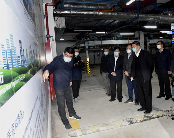 宋老虎、谢辉随后陪同姜大明一行参观了地下机房、智能化控制室和U型对接井。姜大明边听边问,对使用中深层地热能无干扰清洁供热技术很感兴趣,提出的问题,现场的专家一一进行了解答。姜大明详细了解了项目中深层U型对接井换热原理、施工工艺、相关运行情况、可产生的经济效益、社会效益、政策支持等方面情况。随后,深入正在施工的草滩生活基地二期施工现场,了解项目最新进展。