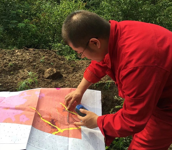 刘佛刚在路线地质调查中确定地质点