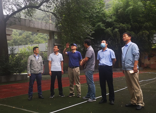 检查组首先对纸坊学校崩塌、教场草沟泥石流等在册地质灾害隐患点现场进行了检查。天地公司技术人员对各隐患点的情况进行了详细汇报,并重点介绍了公司设计的教场草沟泥石流应急处置工程,该项目属于西安市2018年度地质灾害综合防治体系建设项目,目前已完成竣工验收。段中会对天地公司设计的“风镐钻孔+膨胀剂静力破碎+被动防护网”消除大型危岩体隐患的方案表示了肯定,并对隐患点警示牌制作,野外排查注意要点等事项提出了意见。