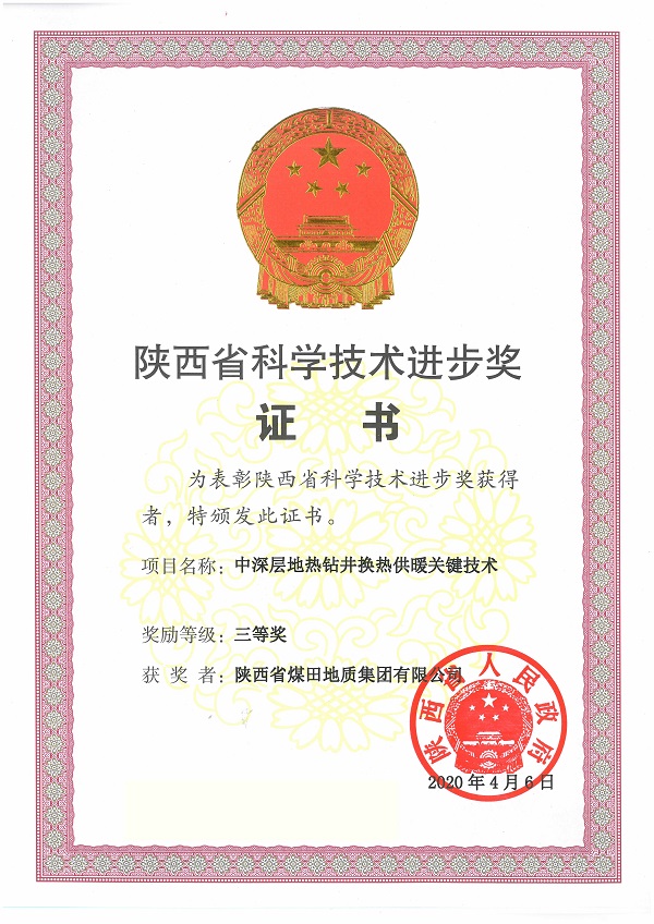 近日,陕西省政府发布《陕西省人民政府关于2019年度陕西省科学技术奖励的决定》,其中由bw必威西汉姆联官网牵头研发,bw必威西汉姆联官网中煤新能源公司、长安大学和贵州汇通华城股份有限公司参与完成的“中深层地热钻井换热供暖关键技术”成果,荣膺2019年度陕西省科学技术进步奖三等奖。