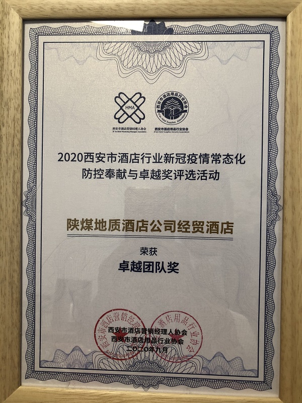酒店公司经贸酒店荣获2020年西安市酒店行业新冠疫情常态化防控卓越奖