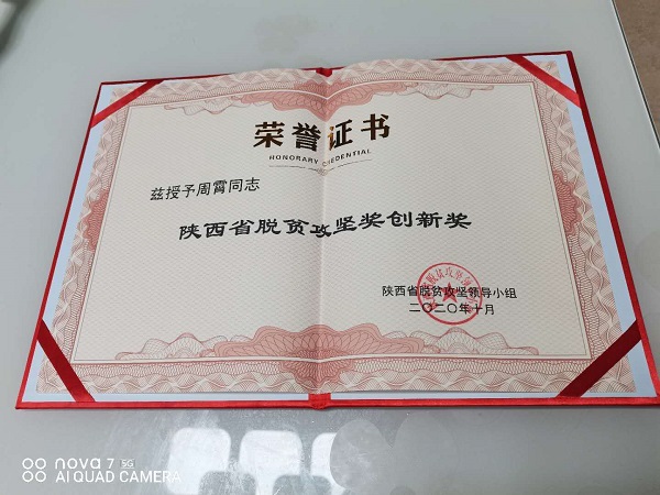 周霄受到陕西省脱贫攻坚领导小组表彰被授予“2020年陕西省脱贫攻坚奖创新奖”荣誉称号