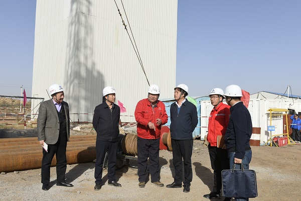 在大海则项目现场,姚建明查看了钻机现场标准化设施,重点检查了现场施工的安全措施、隐患排查落实等相关工作情况,并和职工深入交谈。