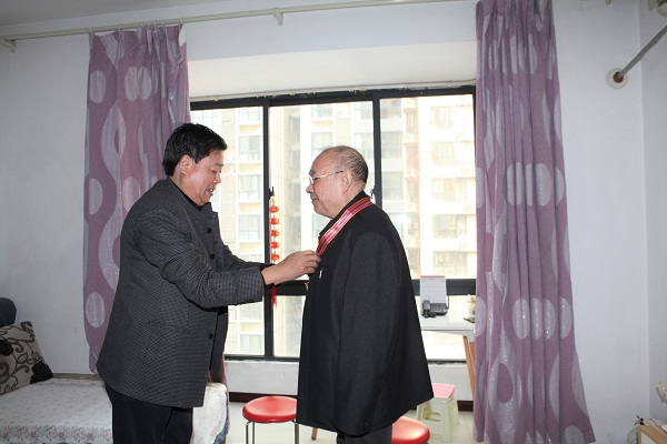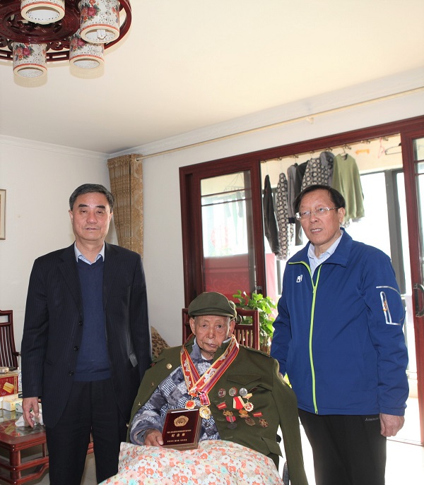 集团党委副书记梁榆平、党委工作部组织处副处长拓宝生看望集团离休干部、抗美援朝老战士李振山,梁榆平为老同志佩戴“中国人民志愿军抗美援朝出国作战70周年”纪念章,并致以崇高敬意和亲切问候。