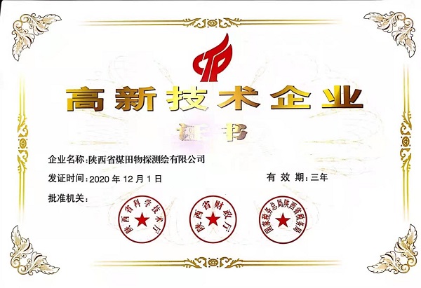 作为全国高科技企业最高的荣誉之一,国家高新技术企业认定工作由国家科技部、财政部、国家税务总局指导管理,对企业有着严格要求,需对公司在核心自主知识产权、科技成果转化能力、研究开发的组织管理水平和成长性指标等方面进行综合评估与认定。物测公司一直坚持以创新驱动为引擎,加速构建“产学研用”深度融合系统,拥有多项自主研发的软件专利和国家知识产权专利,多项高技术成果获中国地球物理学会科技进步奖、陕西省科技进步奖、西安市科技进步奖等诸多奖项,多个项目报告获中国煤炭工业协会优质报告奖、中国测绘学会优质工程奖、国家自然资源部第二批绿色勘查示范项目、陕西省“找矿重大进展奖”、陕西省地质学会煤炭协会科技奖等。企业高新技术实力优势显著。