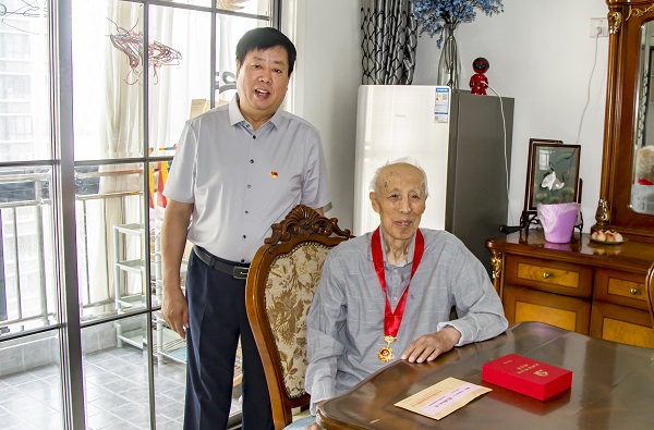 bw必威西汉姆联官网领导谢辉看望慰问老干部向老党员佩戴“光荣在党50年”纪念章