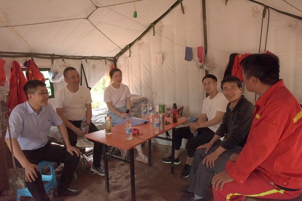 7月6日上午,一九四公司旬邑青岗坪1600钻机施工点,杨敬敏首先代表集团向坚守在一线的职工们表示亲切的慰问,同时送上清凉用品,还与一线职工认真交谈,仔细询问工作和生活情况,叮嘱其注意安全、保重身体,做好防暑作业,对于该项目所处地理位置,提醒大家出行一定要注意交通安全,并要求项目部做好食堂卫生、疾病防疫等,强调在施工现场要落实高温天气施工工作方案,合理避开高温时段,切实把防暑降温工作深入到一线每个岗位,确保施工进度和工程质量安全等各项指标顺利完成。