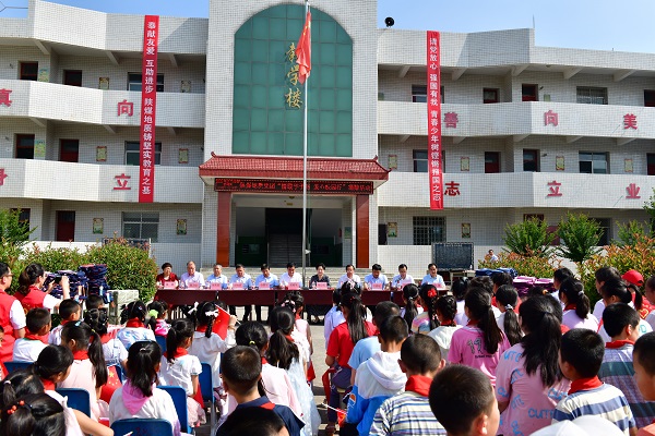 7月9日,集团在扶风县天度镇鲁马小学开展了“情暖学子路,爱心校园行”志愿捐赠活动,向鲁马小学捐赠了价值7.2万元的智慧教学系统设备、桌椅、图书、文具等,彰显国企社会责任担当,助力提升贫困地区农村基础教育质量。集团党委副书记梁榆平,扶风县县委常委、常务副县长鲍小凤出席捐赠仪式并讲话。扶风县天度镇党委副书记张建锋主持捐赠仪式。