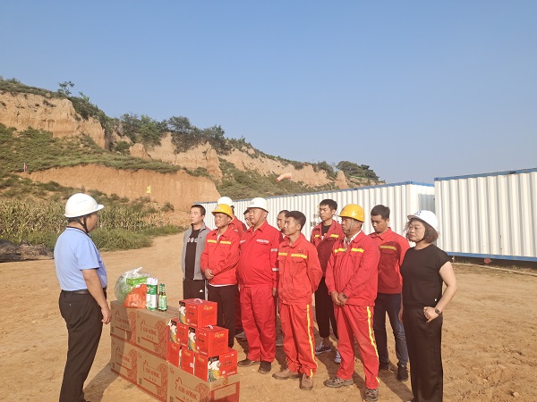 在施工井场,公司领导代表一九四公司对井队员工表达了“节日”的问候,并逐一发放慰问金和慰问品,为一线职工送去党组织的温暖和关怀。随后,对施工现场进行了安全生产专项检查。先后检查了项目施工、钻机现场用电、高处作业、设备设施防护、物资储备和人员值守等重点部位和领域,强调标准化和双重预防机制建设情况,查阅了相关台账资料,现场通报了存在的问题和隐患,提出了整改意见和建议。