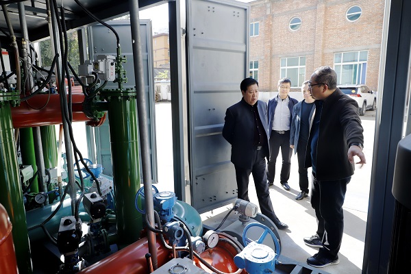谢辉一行还对公司机械厂开展的地热移动回灌站、井下换热器及分层抽水、分段固井装置进行了参观指导。