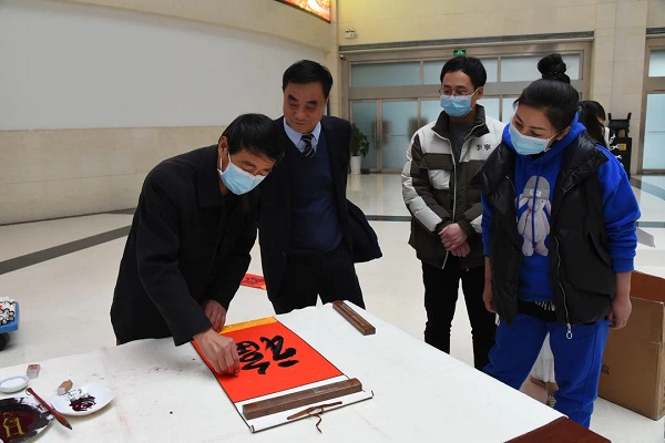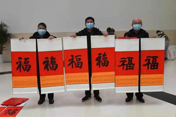 无联不成春,有联春更浓。活动现场,饱含热情,挥毫泼墨。三位职工书法家挥毫泼墨、笔走龙蛇,或楷书、隶书亦或是行书和草书,各展其能。一起一落间,一幅幅苍劲有力、喜庆洋溢、满载美好祝愿的春联跃然纸上,一张张寓意着吉祥如意的“福”字随笔而出。前来的职工个个洋溢着欢乐喜悦的心情,或在楹联单上挑选着自已要写的春联,或已提前就精心准备好了要写的内容。活动持续了近3个小时,200余套春联福字,140件带轴待书挂历被一阵写磬。